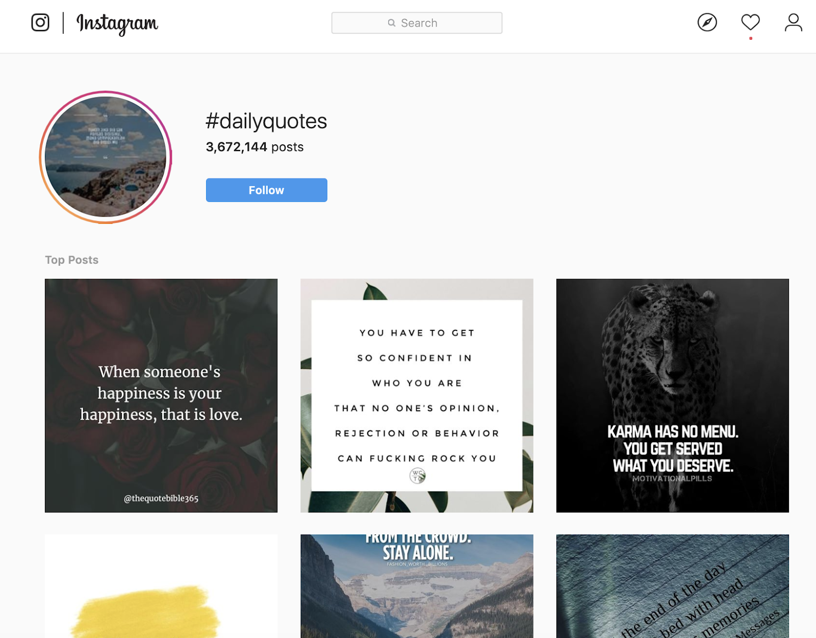 정확한 타깃 구매층이 있는 브랜드도 고객층 제한을 두고 싶은 브랜드는 없을 것입니다. 반대로, 작은 규모의 비즈니스를 운영하시는 분들이라면 좀 더 확장되고 많은 대중들에게 사랑을 받는 브랜드로 거듭나길 원할 것입니다. 일주일 or 격주로 대중적인 콘텐츠를 비즈니스 피드 디자인에 포함시키는 것도 좋은 방법입니다. 예를 들어, Daily Quote (하루의 명언)을 피드 디자인으로 만들게 되면, 연령층이나 성별에 관계없이 많은 라이크나 관심을 받는 포스트가 됩니다. 이외에도 대중적으로 관심을 받을 수 있는 여러 포스트를 연구하여 적절히 자신의 비즈니스 만의 느낌으로 재해석한 포스팅은 팔로워와 구매자를 상승시키는 데에 큰 도움이 됩니다.