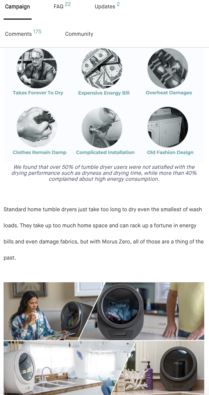 물론, 상세페이지 안의 비디오도 굉장히 중요한 역할입니다. 많은 글보다는 한 장의 사진이나 도표가 이해하기 쉽고, 많은 사진보다는 1분 이내의 short video가 제품을 이해하는 데는 가장 큰 역할을 합니다. 비디오 내용은 제품에 대해 정확한 설명과 프로젝트 설립 백그라운드 설명 그리고 call-to-action 후원자들이 어떻게 하면 도움을 줄 수 있는지에 대한 구체적인 설명들이 들어가면 좋습니다. 펀딩 성공자들은 하기 세 가지는 꼭 포함시키는 것을 추천한다고 합니다.