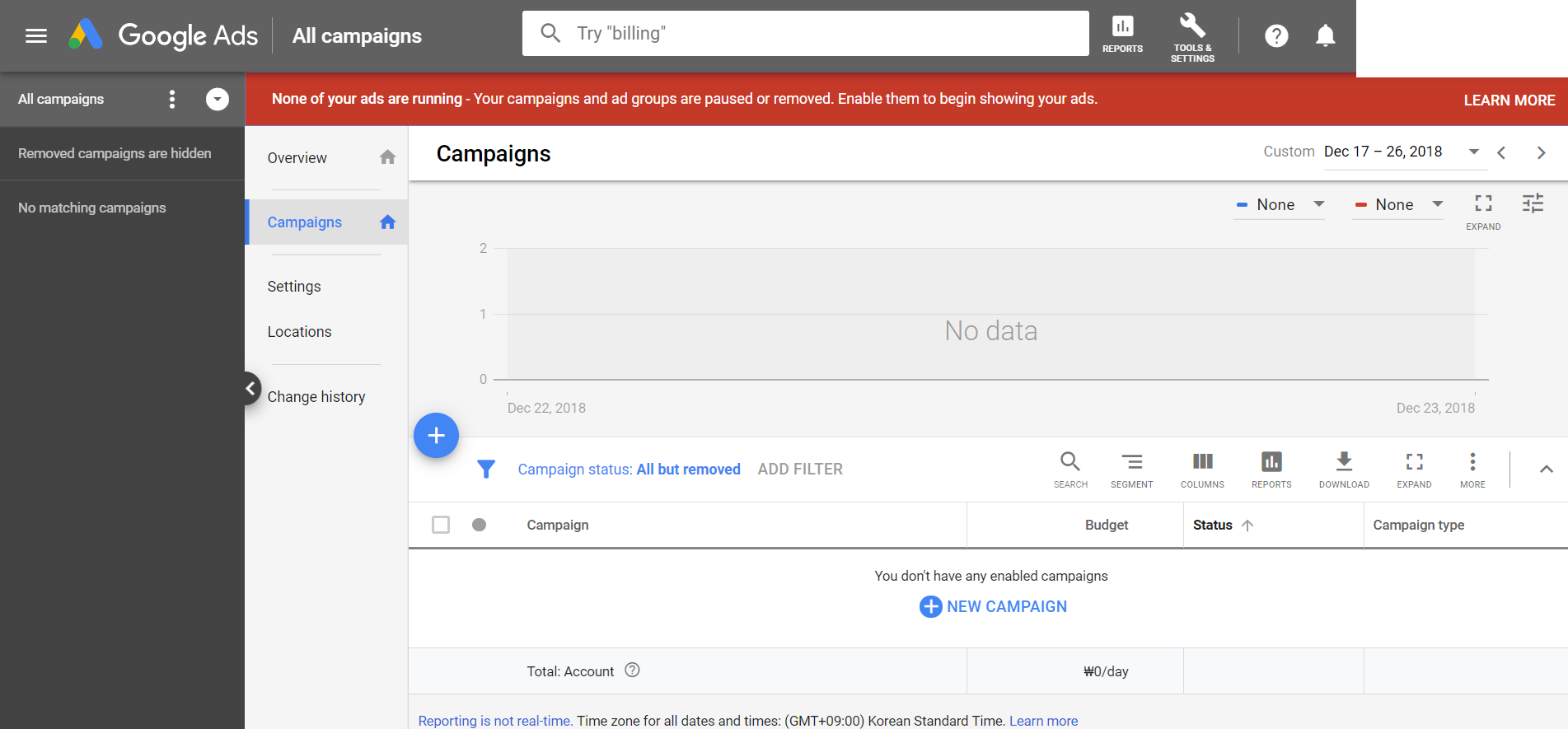 (구글 애즈에 가입되어 있어야 다음 화면을 보실 수 있습니다.)