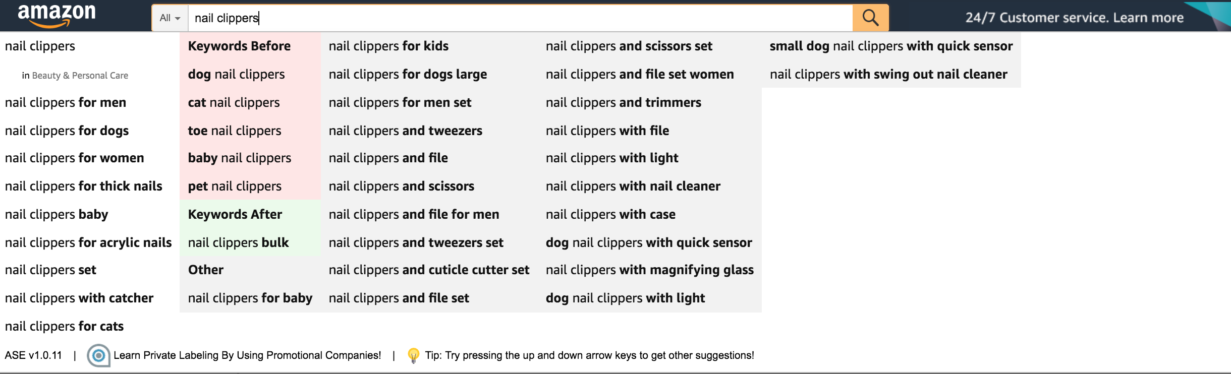 구글 크롬에서 설치해서 사용가능한 확장 프로그램입니다. 아마존에서 가장 신뢰도가 높은 키워드 수집 방법은 무엇일까요? 바로 아마존에 고객이 실제로 입력하는 검색어를 알아내는 것입니다. 이 때 가장 좋은 방법이 바로 아마존 검색창의 자동 추천 검색어를 수집하는 것인데, 이 확장 프로그램을 사용하면 아마존 자동 추천 키워드를 한 번에 더 많이 수집할 수 있습니다. 기본적인 기능은 글자를 입력하면 그 뒤에 나올 글자나 단어를 예상하여 추천해주는 것입니다. 익스텐션을 사용하면 검색한 단어의 앞 뒤, 중간까지 자동 완성 기능을 확장할 수 있습니다. 키보드 위 아래 키를 사용하여 더 많은 키워드를 얻을 수 있습니다. (단, 텍스트 복사가 안된다는 치명적인 단점이 있습니다.)