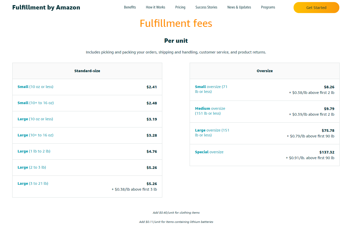⑤ Fulfillment by Amazon Fees : 창고 주문 처리 수수료