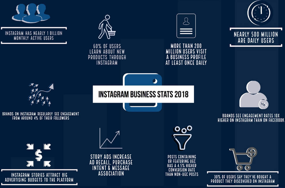 아래의 인포그래픽 결과와 같이 인스타그램 유저들의 60% 이상의 사람들은 새로운 제품에 대해 배우고, 알아갑니다. 또한 그들 중 30%는 인스타를 통하여 제품을 구입한 경험이 있습니다.