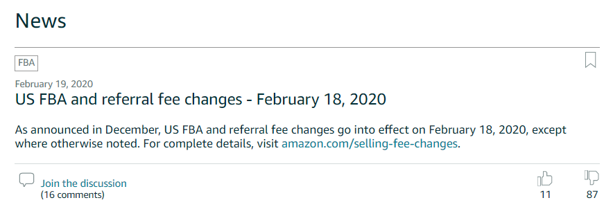 2020년 2월, 아마존은 FBA 수수료 변경 공지를 하면서 업데이트된 판매 수수료 체계를 공개했습니다.