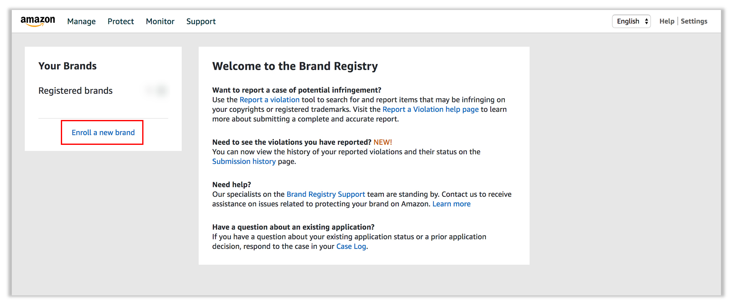 STEP 3: Enroll a new brand를 클릭합니다.