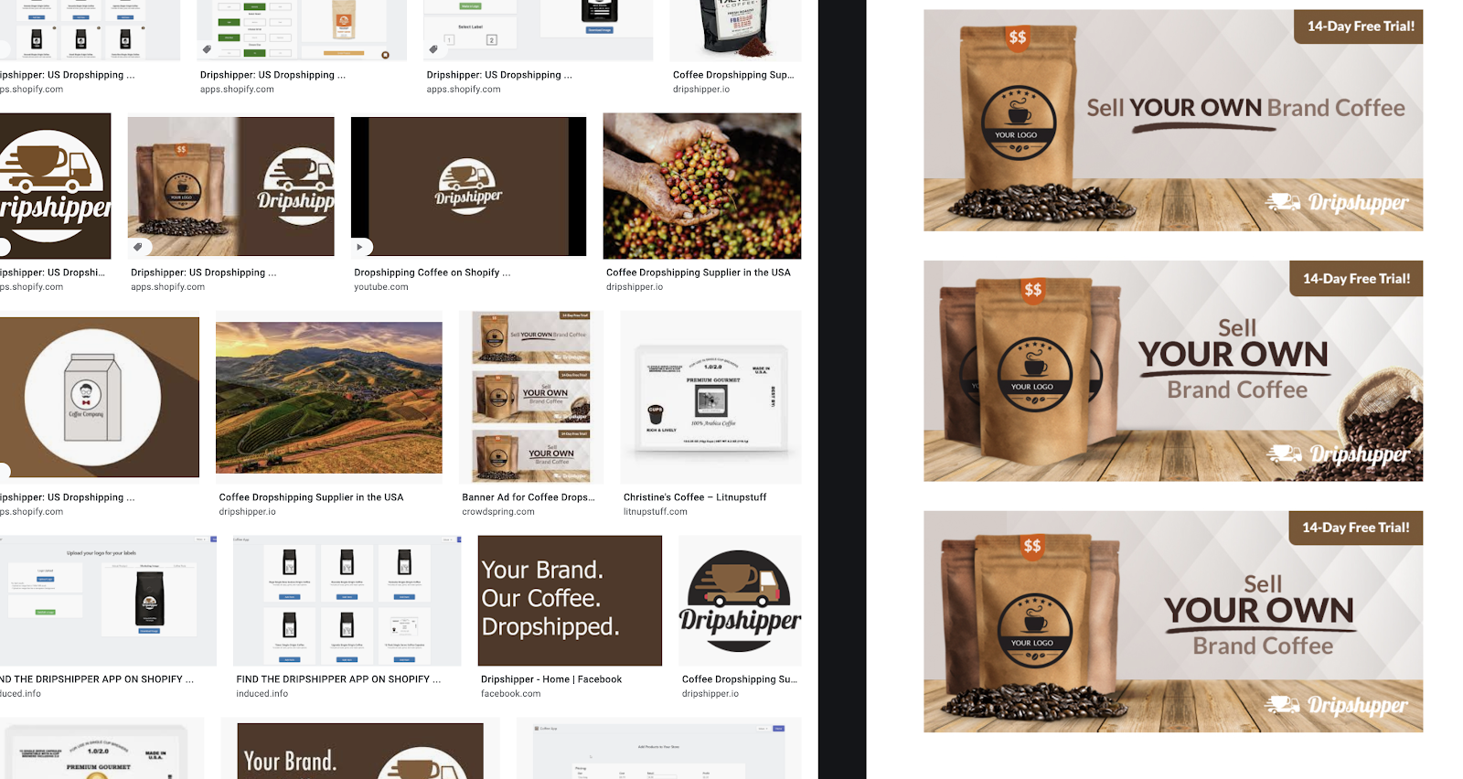 드립 쉽은 커피 전용 드랍쉬핑입니다. 자신의 브랜드 로고가 새겨진 커피를 판매할 수 있도록 도와주는 솔루션입니다. 응용프로그램을 이용하여, 라벨 및 용기 디자인을 선택할 수도 있습니다.