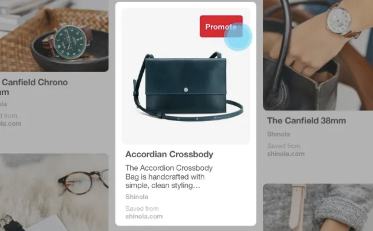 광고를 통해 게시된 핀은 “Promoted by”라는 레이블이 생성되어 나타납니다.