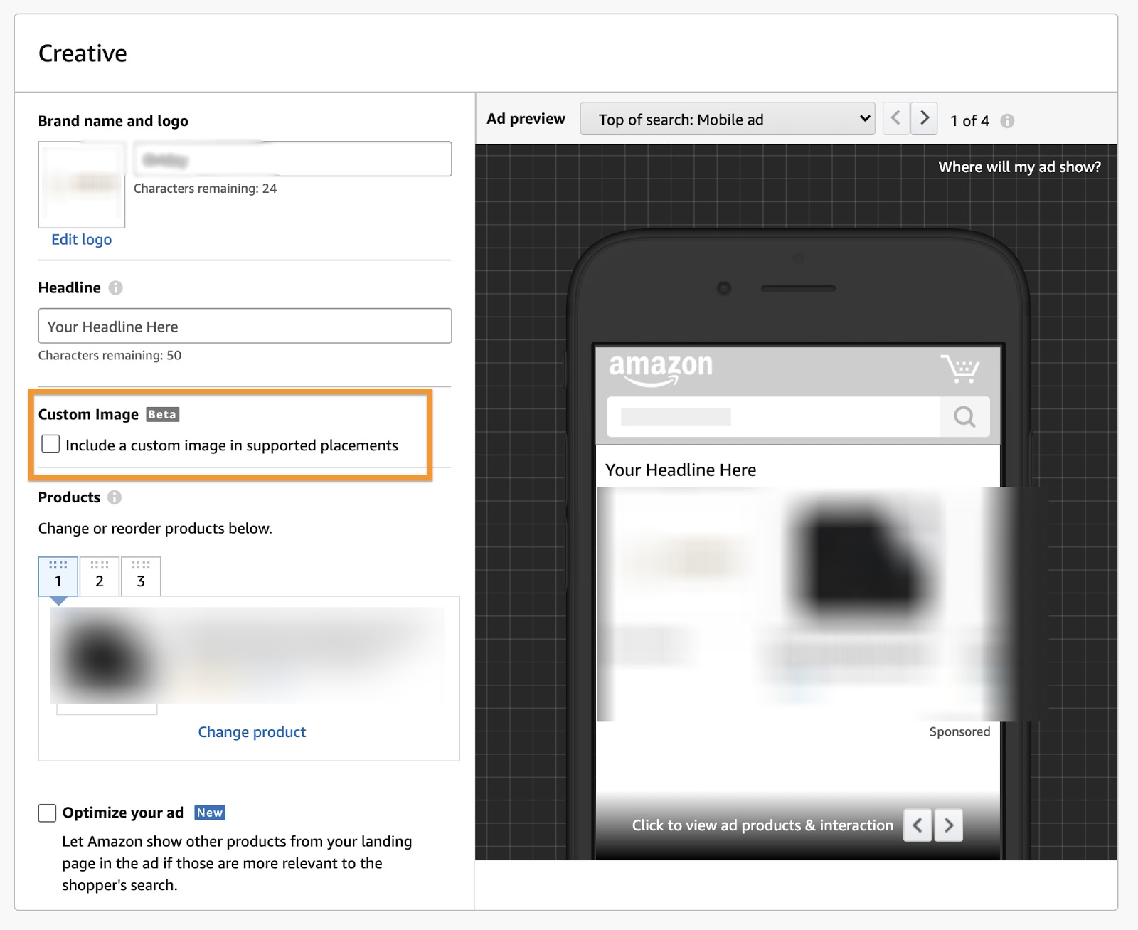 - 제품 컬렉션 (Product collection) 캠페인 종류에서는 Custome image 라는 새로운 기능이 베타버전으로 실행되고 있음.